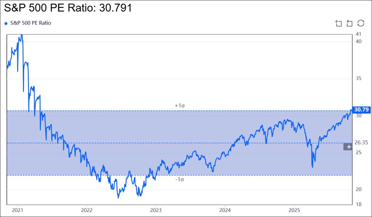 Both valuation metrics and technical signals point to the same conclusion — the market is stretched, and a 10–15% correction wouldn’t be a disaster; it would be a return to balance.